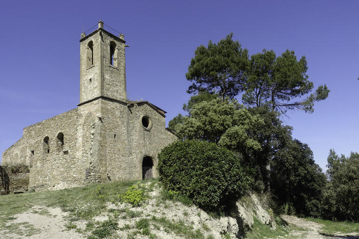El camí va pujant suaument per una aromàtica pineda solella i, just a dalt, ens acostem a tocar el petit cingle on els recolza Viladecavalls, vorejat d’alzines i grans lloses de pedra fins a trobar, de sobte, l’Església Vella de Viladecavalls. En aquest mateix indret hi ha el mas el Llucià.