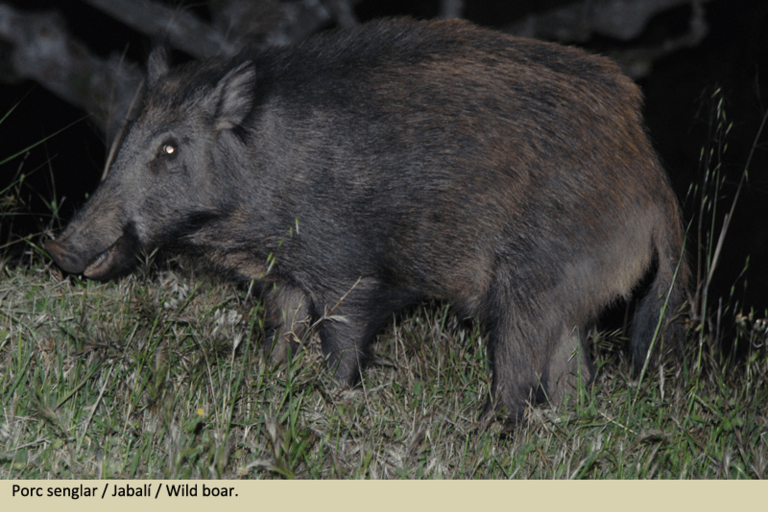 Estic segura que al llarg d'aquesta caminada heu sentit sorolls d'altres animals prop del camí o, fins i tot, heu vist petjades a terra. Som en un paisatge viu en el qual podem trobar, entre la vegetació, teixons, guineus i d'altres animals, alguns dels quals guarden similituds amb les espècies que convivien amb en Pau, com els porcs senglars.