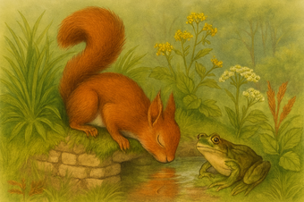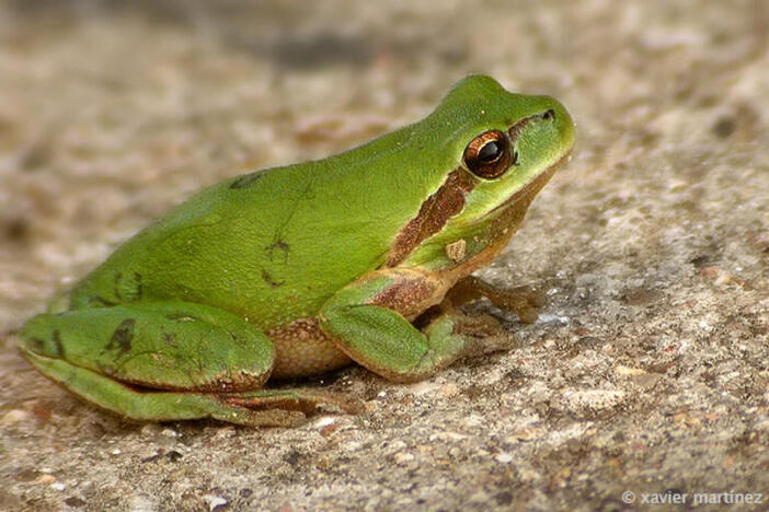 La reineta (Hyla meridionalis) és una petita granota que viu als arbres i que a la primavera entra a dins l’aigua per criar.