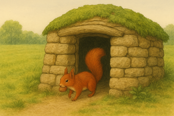 Integrada amb l’entorn, trobem una altra barraca, en aquest cas de planta quadrada i adossada al marge. La construcció d’aquestes barraques es feia utilitzant les pedres que sortien de despedregar els camps, preferentment lloses de pedra sorrenca vermella (marès), que és més fàcil de treballar que el conglomerat.