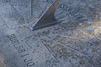 “Rellotge de Sol. Situació geogràfica: Latitud nord 41° 43'; Longitud est 2° 30’. Altitud sobre el mar: 178 m. Any de veïns de Gualba: 1982. Donació de Josep Campos.”