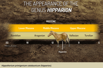 Este largo período puede dividirse en subperíodos a partir de la tipología faunística encontrada. Esto es lo que ocurrió, por ejemplo, con el hallazgo del Hippotherium primigenium catalaunicum, un caballo de pequeño tamaño, que permitió diferenciar entre el período Aragoniense (de 18 a 12 millones de años, con un clima húmedo y bosques más cerrados) y el Vallesiense (de 12 a 9 millones de años, con un clima más seco y espacios más abiertos).