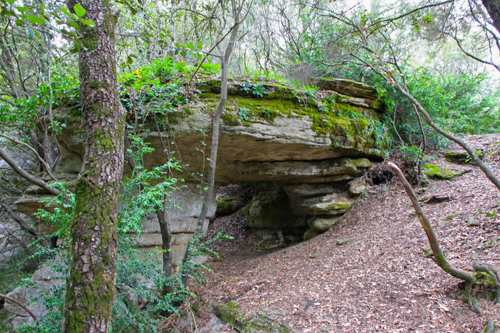 Els gresos tous que formen la base del puig del Far, fàcilment erosionables, han afavorit la formació de les balmes que trobeu. Aquests grans blocs de gres i balmes devien ser un bon refugi per als antics bandolers de Vilanova de Sau.