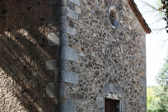 Tot seguit arribem a l’ermita de Sant Cristòfol, una capella de pedra amb una sola nau i un petit cor de fusta sobre l’entrada. El presbiteri està cobert per una volta amb arcs sobre mènsules i, a l’exterior, destaca l’espadanya amb campana i la llinda gòtica de la porta, datada del 1587. Tot i això, la capella ja es documentava l’any 1328.