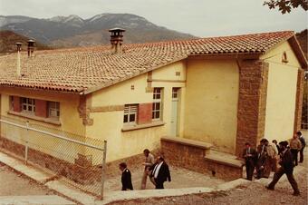 Aquí va haver-hi el primer edifici escolar del nucli de Guardiola. Fins aleshores, les classes es feien en pisos llogats. L’escola dels nens estava  situada a Cal Julià, un pis del Carrer Comerç i la de les nenes en un pis de la plaça de l’Hostal Nou.