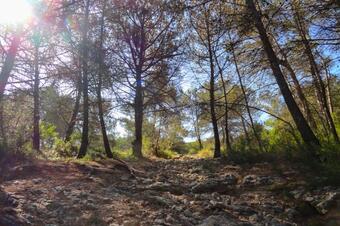 Tot seguit, ens endinsem en una obaga que afavoreix un major nombre d'espècies vegetals. L’erosió de la roca calcària ha generat petites cavitats amagades entre la vegetació, on destaca la cova Isidre Serra. Poc després, i ja acabant el recorregut, us recomanem accedir a la barraca de Cal Barracot on gaudirem de boniques vistes damunt la conca d’Òdena i Igualada al fons.