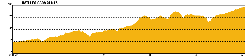 - Pista i camí de pendent ascendent suau i progressiu. Hi ha algun tram curtet de pujada més forta.