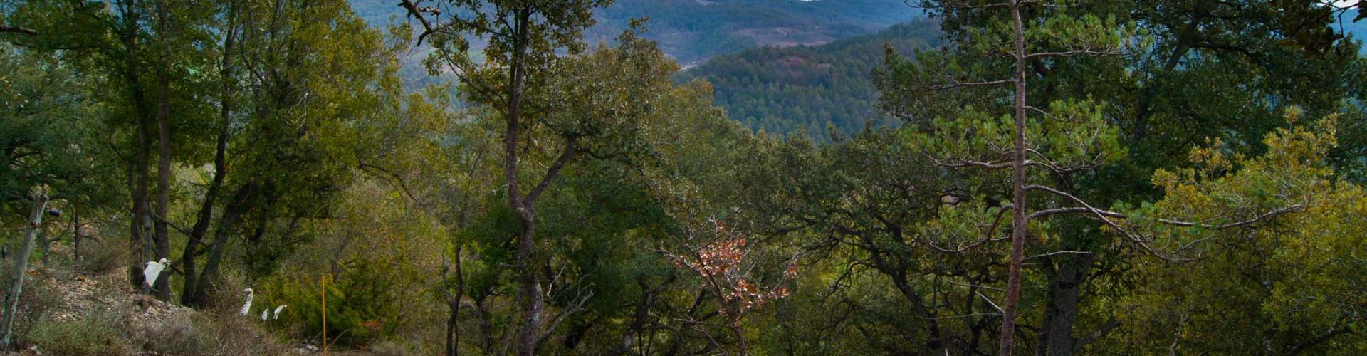 Anem a buscar la riera Gavarresa, la joia de la nostra excursió, mentre baixem per la baga que alberga els típics alzinars de muntanya, pinedes de pi roig i boscos mixtos amb roures i blades. Tot plegat fa difícil dir quina espècie és la dominant.