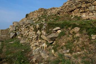 En poca estona haurem assolit la base del puig de les Muralles on s'escampen les restes de murs i altres estances del poblat de Puig Rom o Castrum Visigòtic. Podrem pujar fins a la part més altra del promontori, poder observar gran part de les seves restes i evidents excavacions, així com donar-hi la volta per la base a través de l'amable i aeri caminet de ronda, ja que des dels vessants sud-oest i nord-oest, ens ofereix una gran vista panoràmica del golf de Roses, part de l'Alt Empordà i muntanyes circumdants.